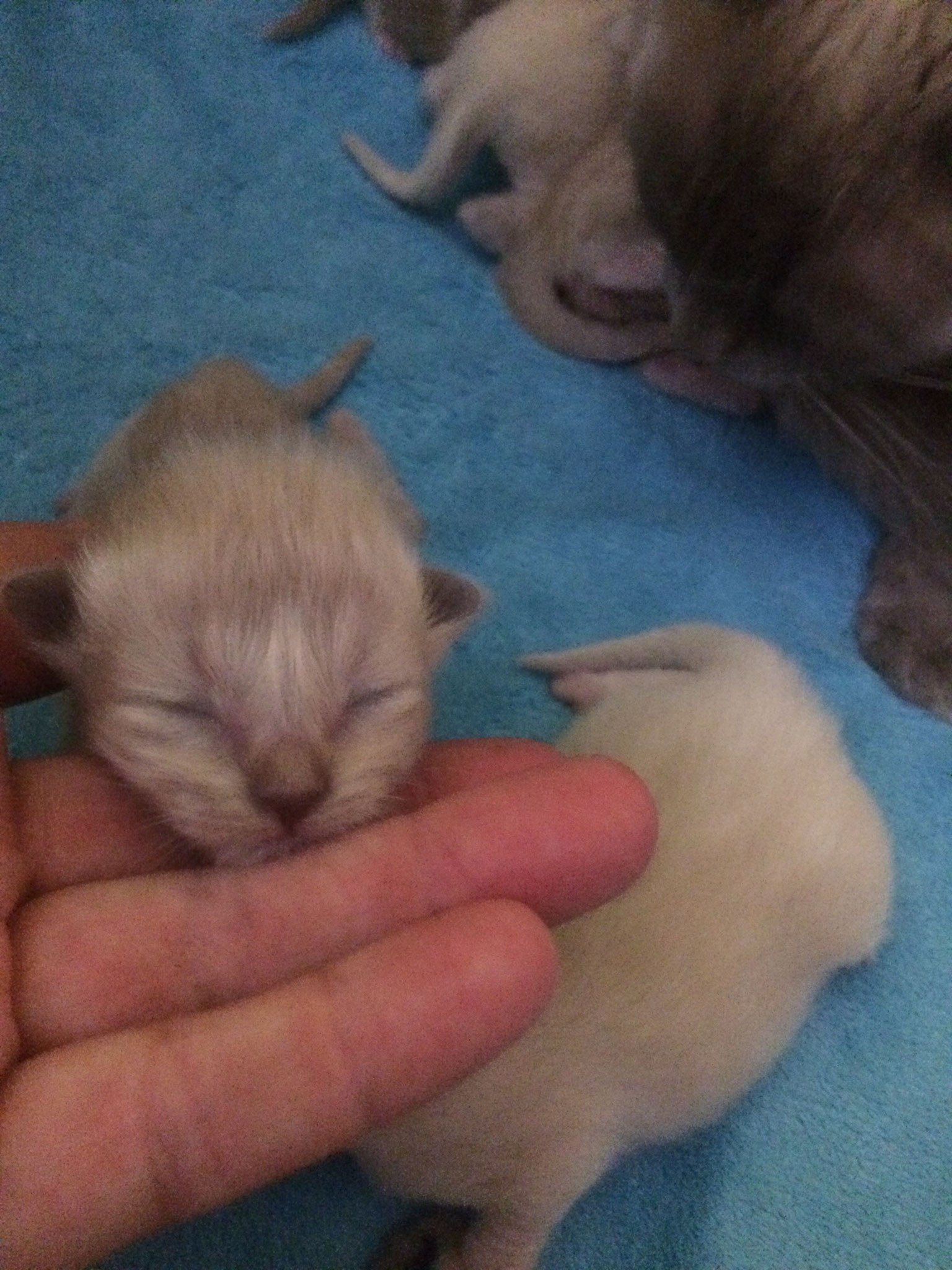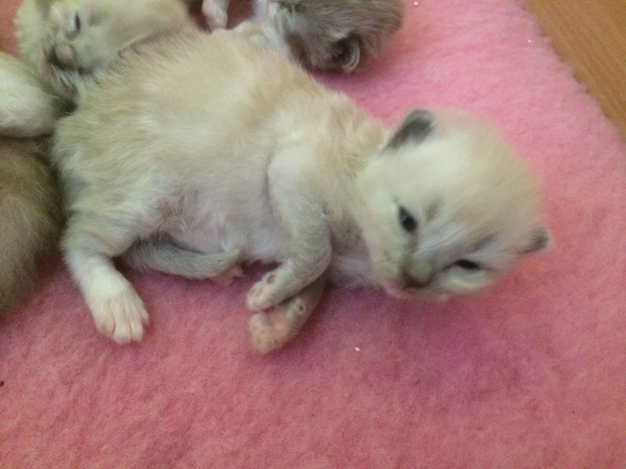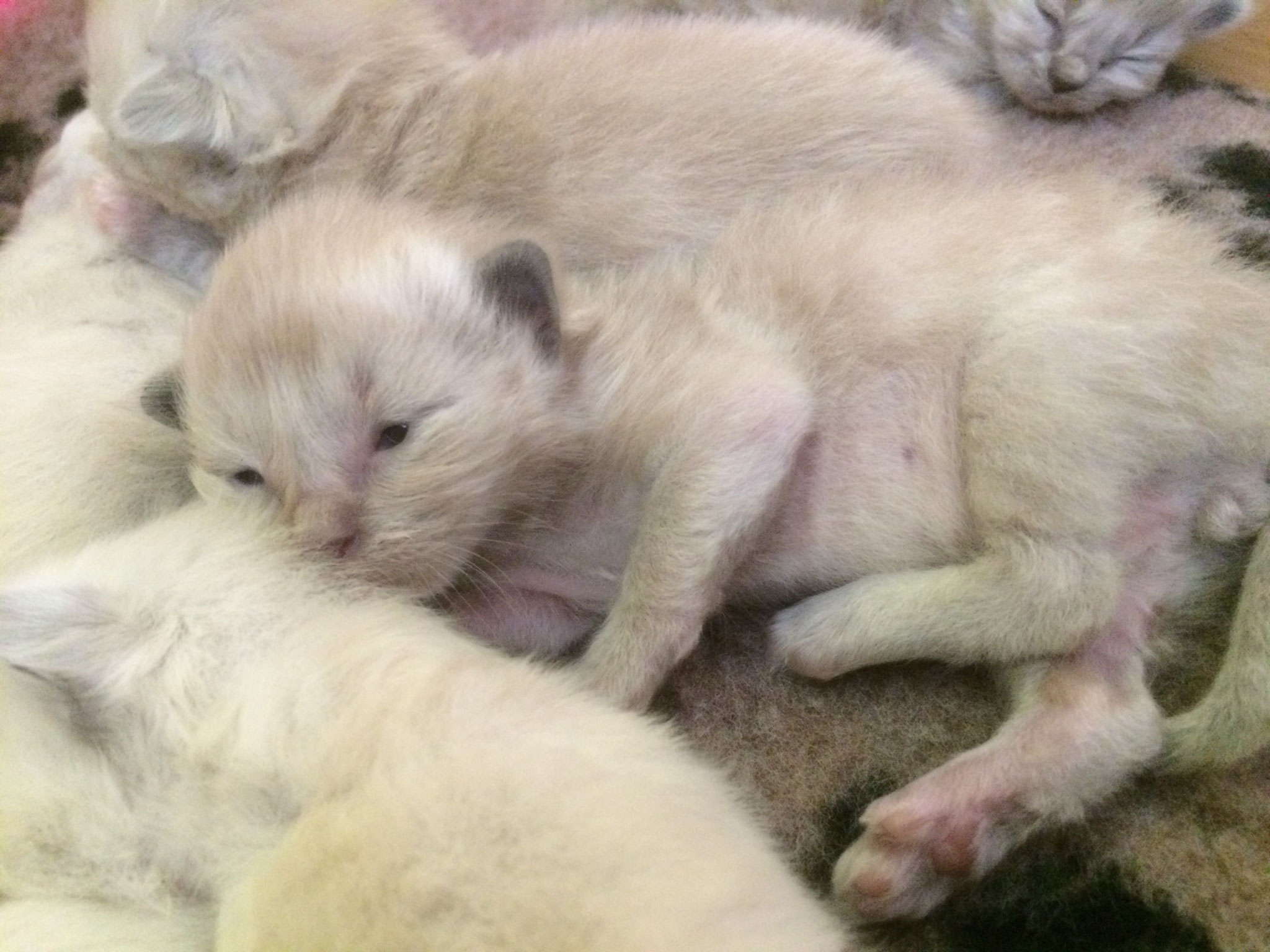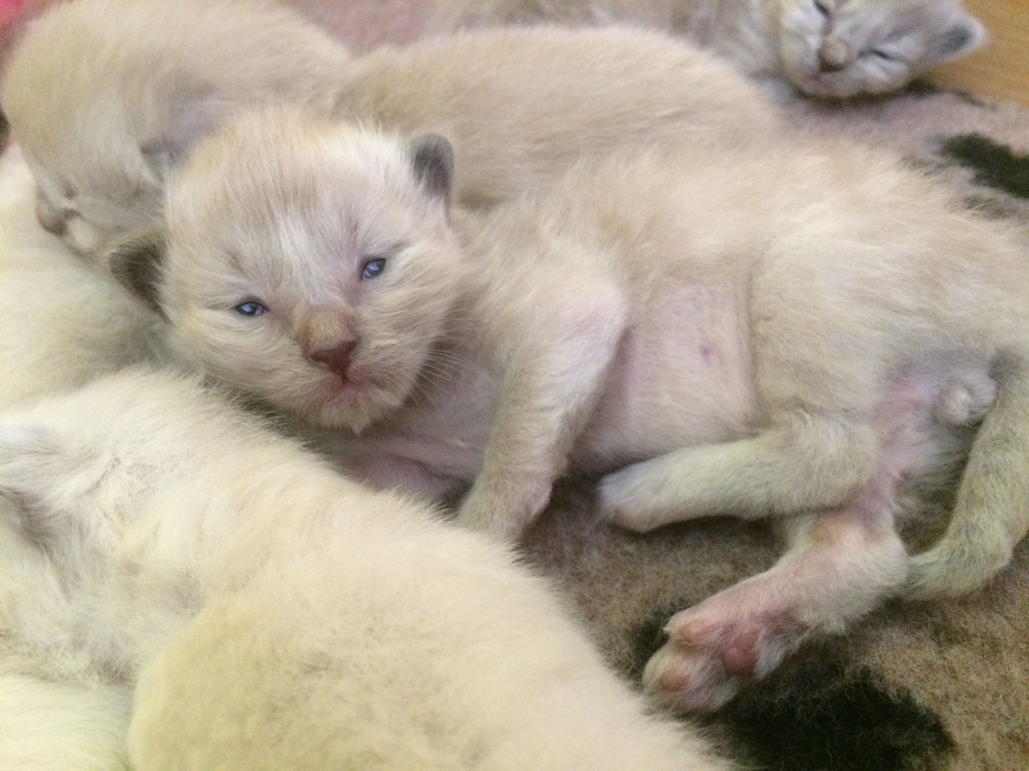 De lichtgekleurde kittens blijken nu toch points te zijn (ondanks dat ze licht gekleurd geboren zijn).