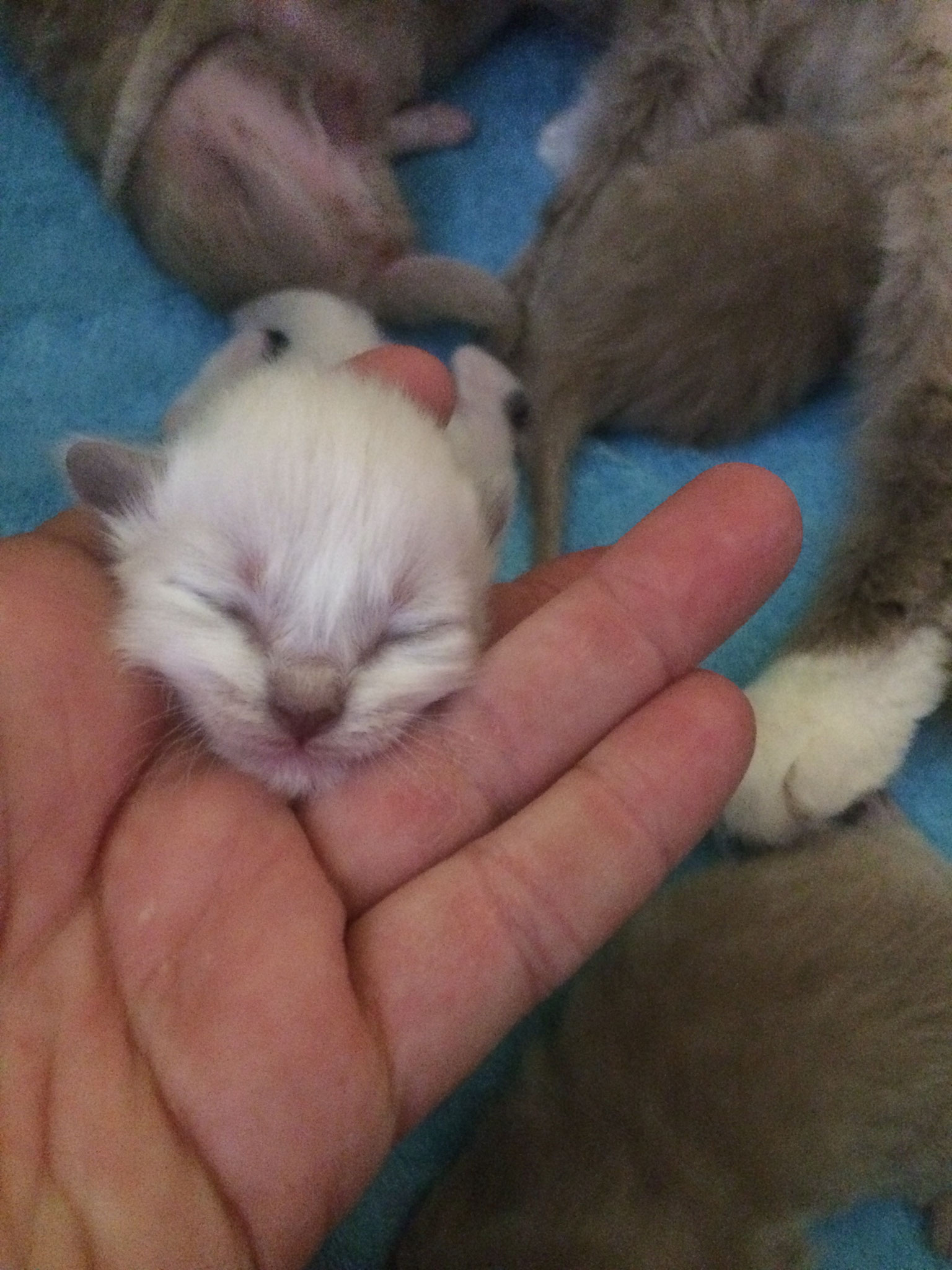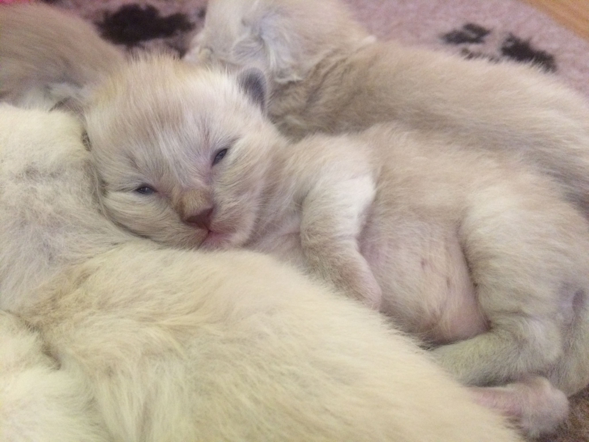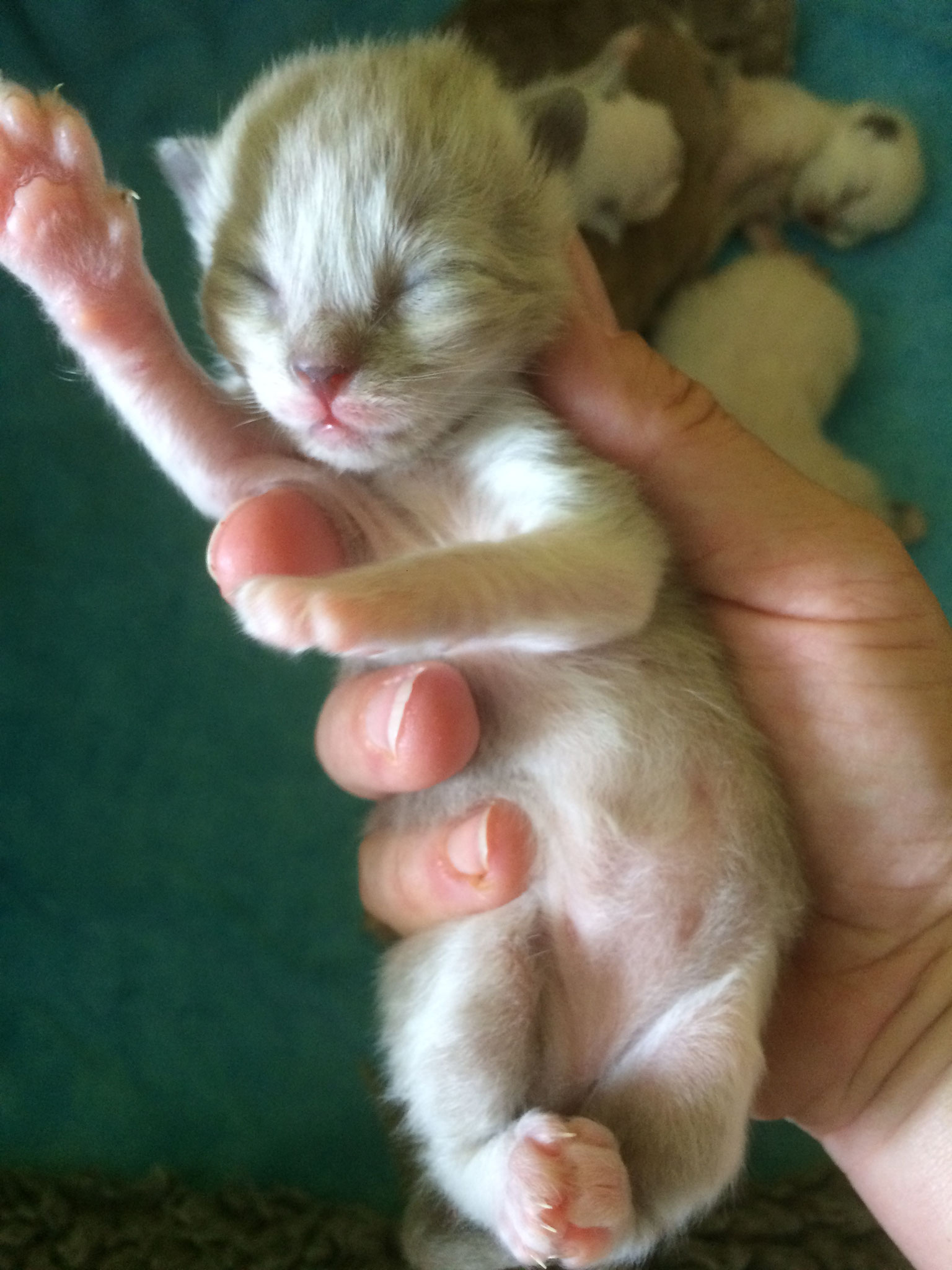 De lichtgekleurde kittens blijken nu toch points te zijn (ondanks dat ze licht gekleurd geboren zijn).