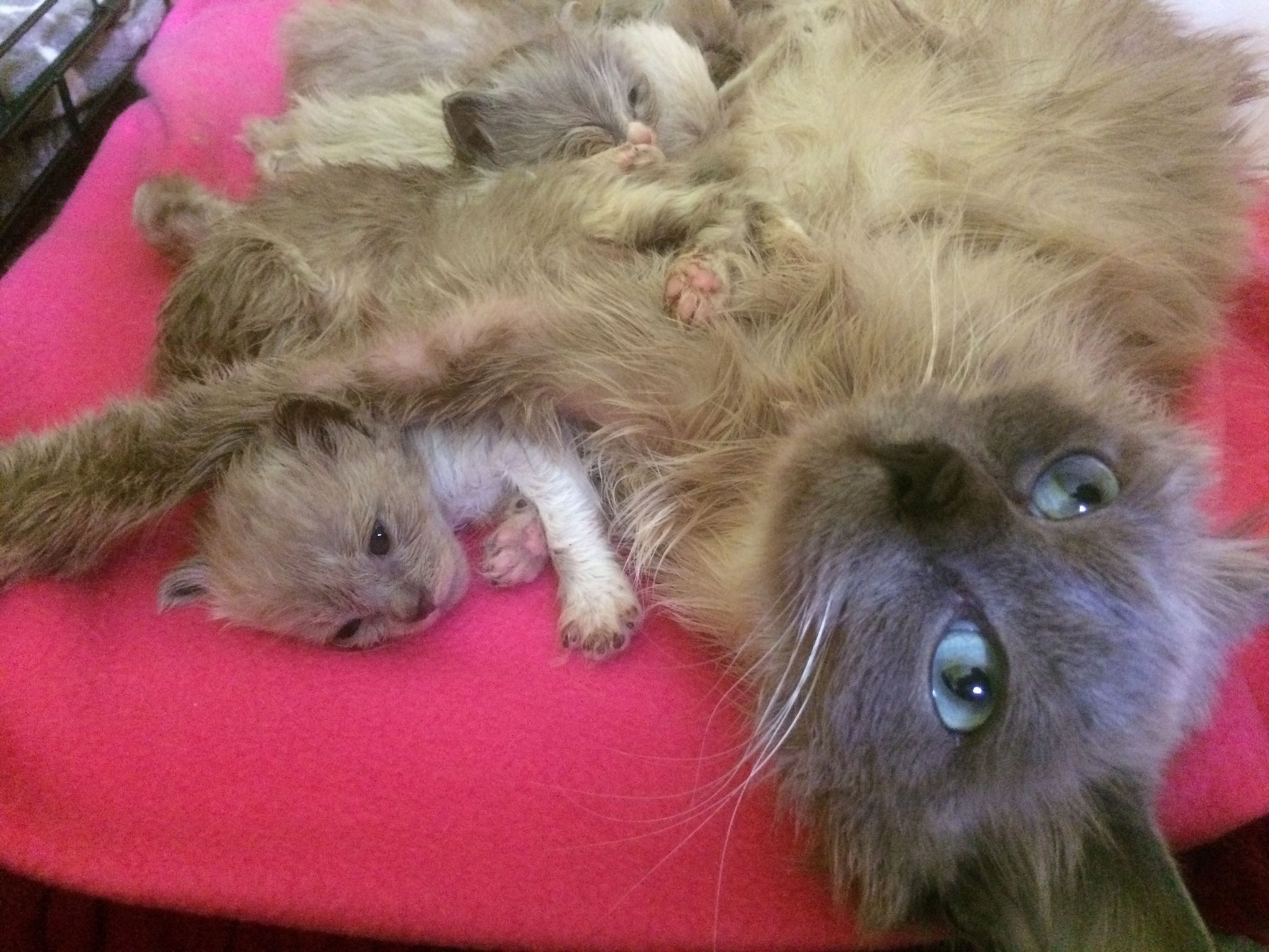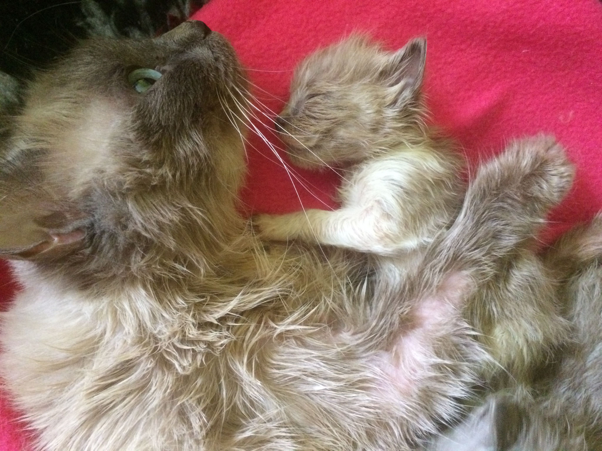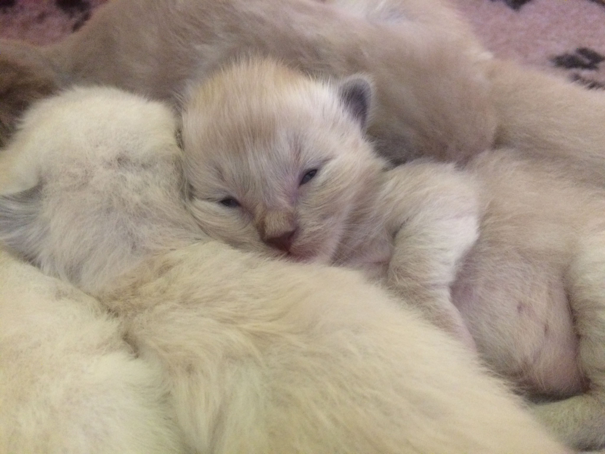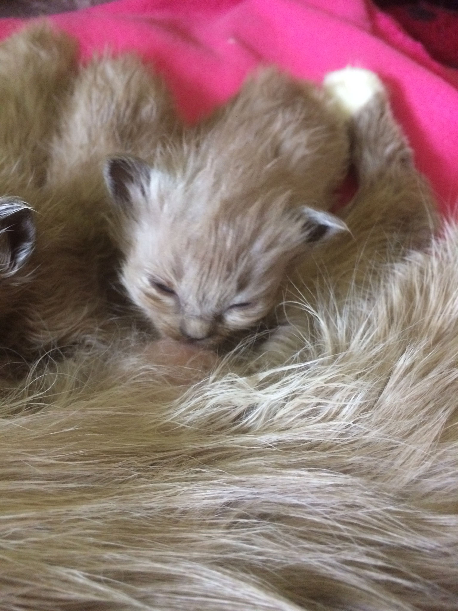 De lichtgekleurde kittens blijken nu toch points te zijn (ondanks dat ze licht gekleurd geboren zijn).