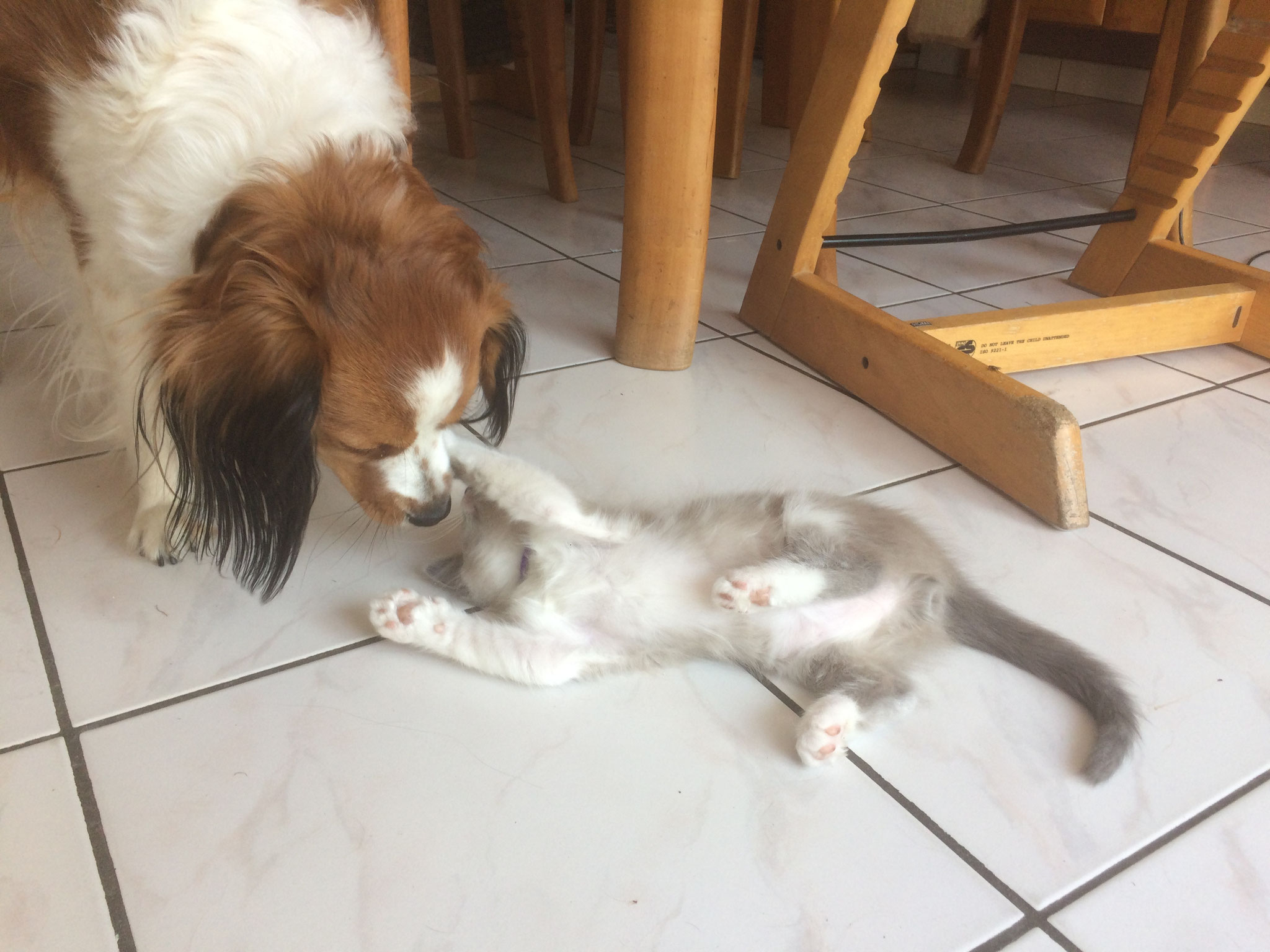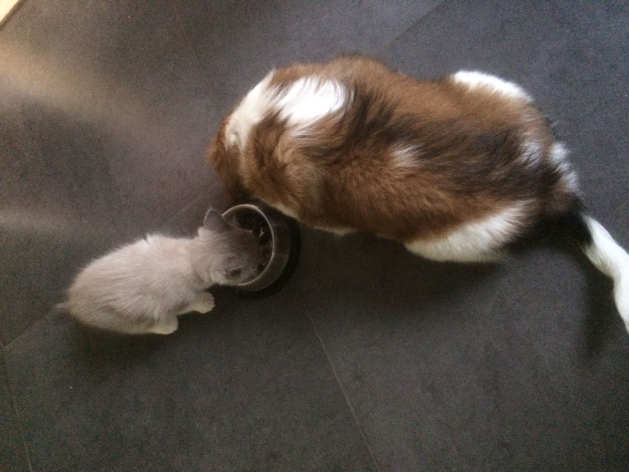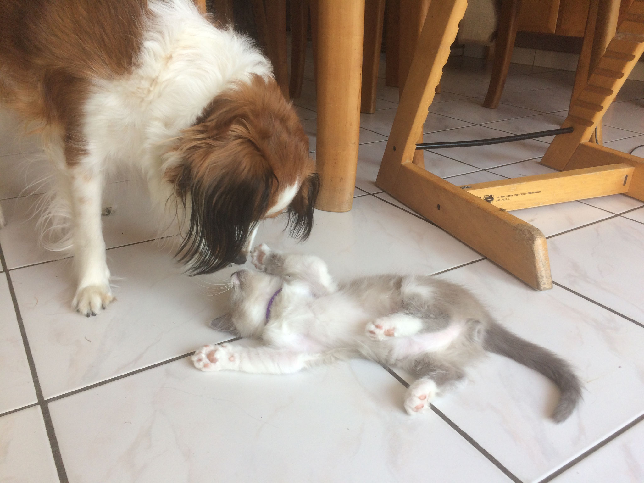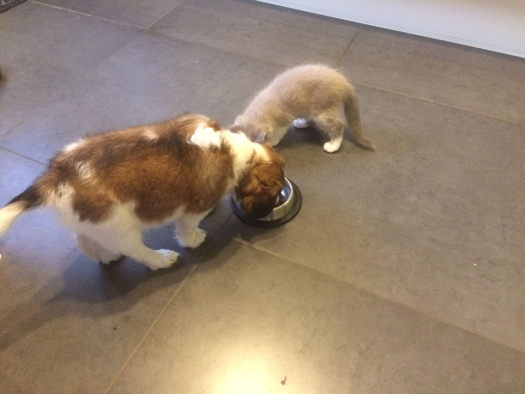 Milan, het kitten en Luiz de pup hebben een bijzondere vriendschap gesloten.
