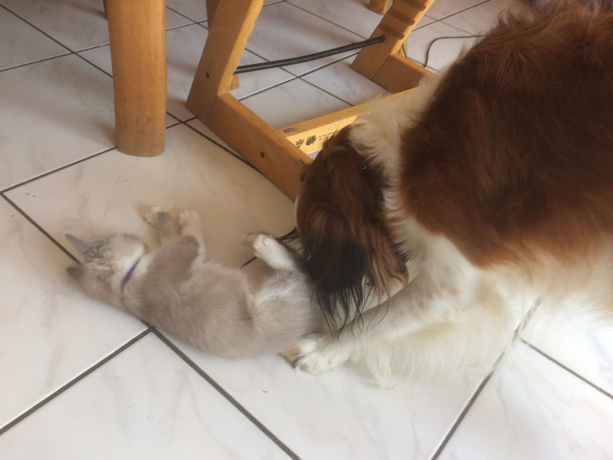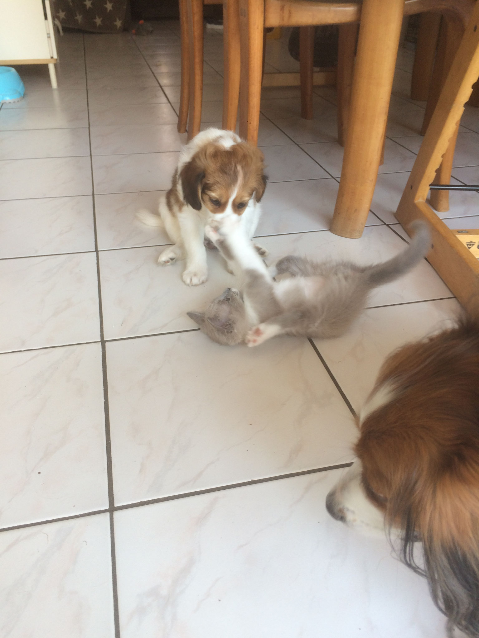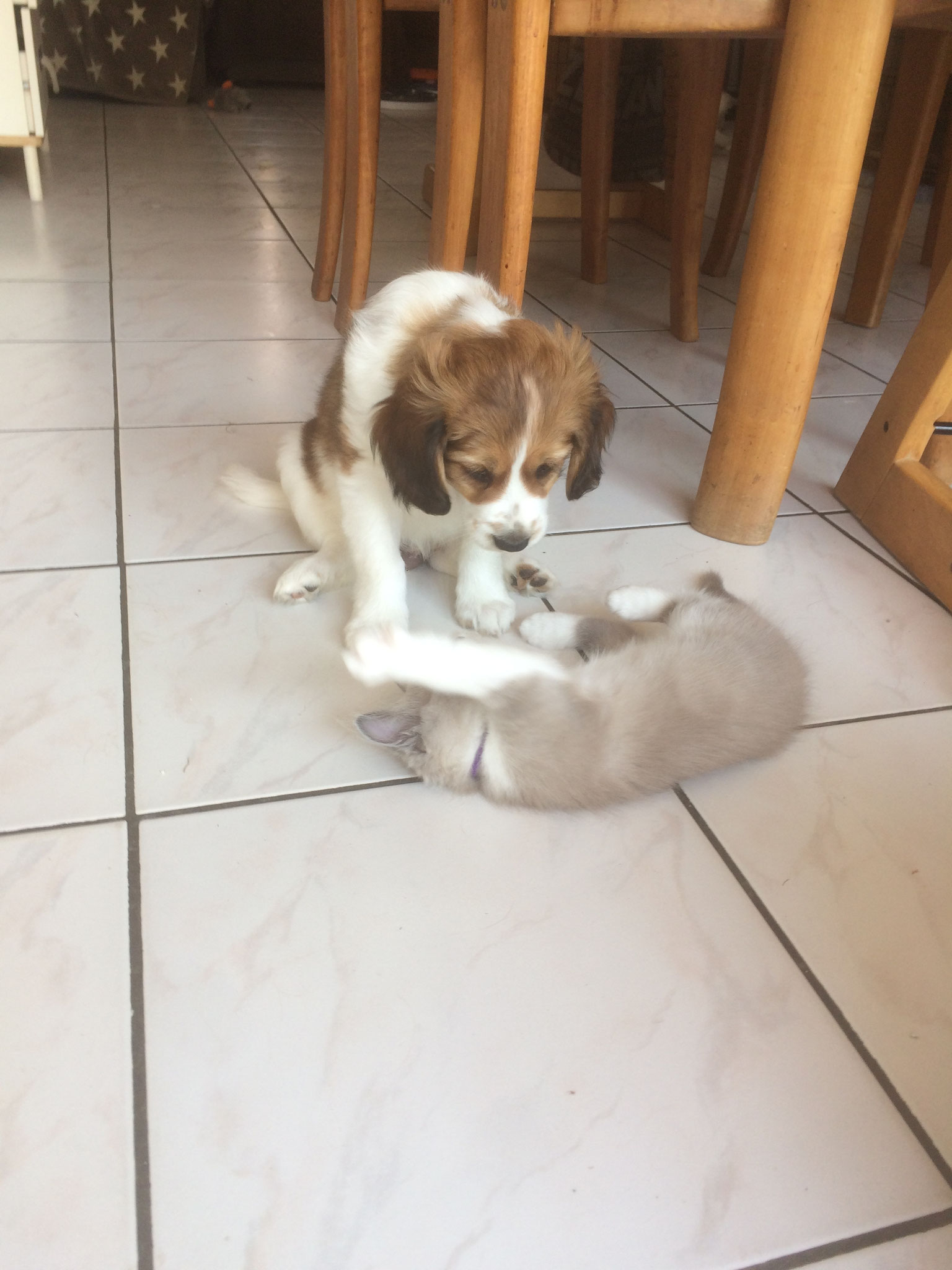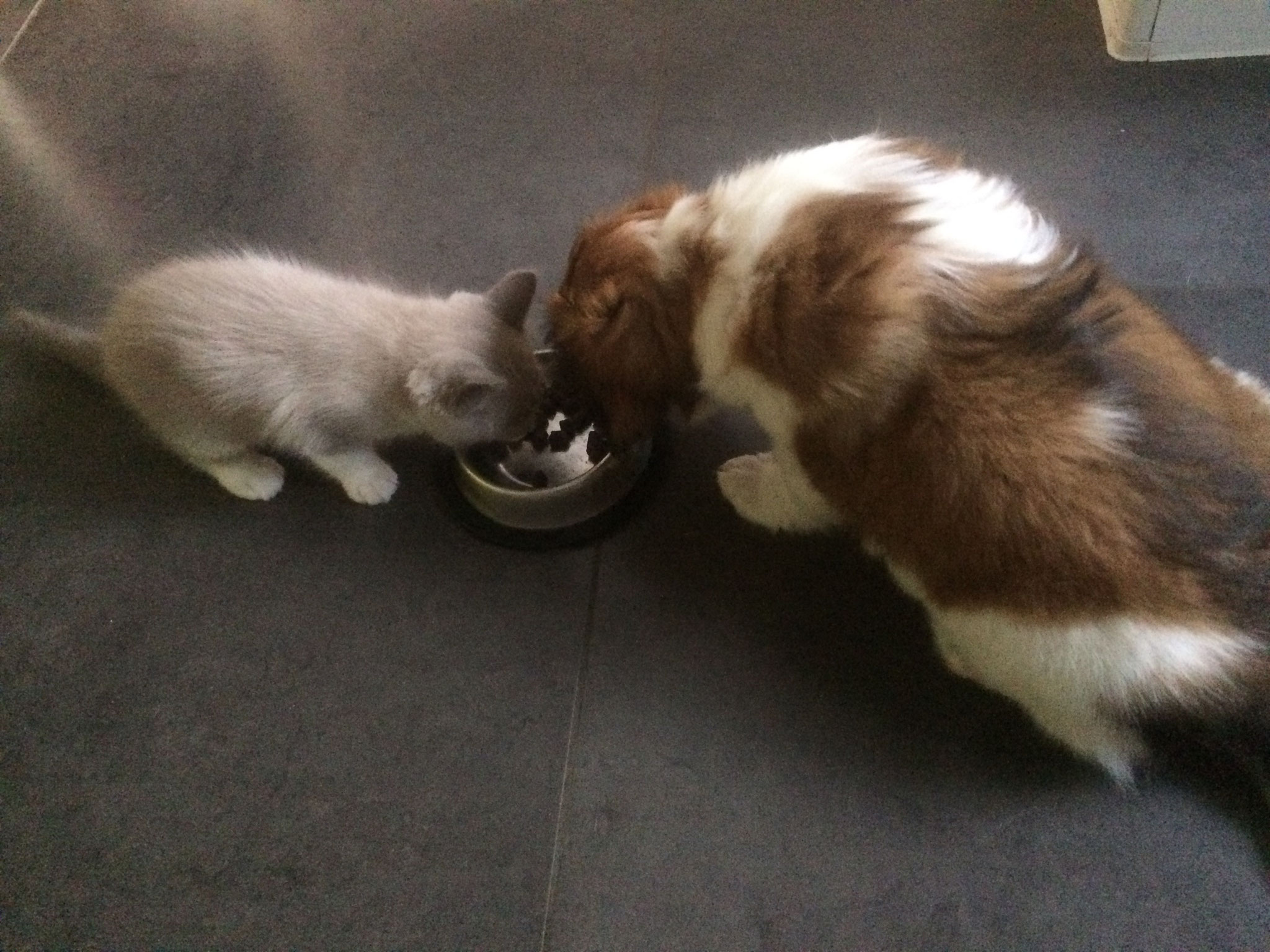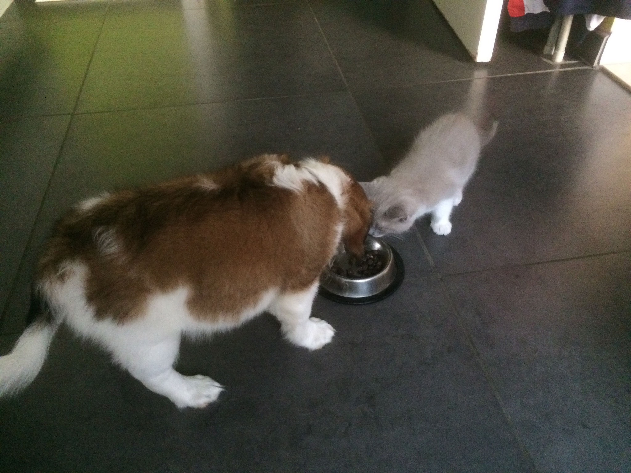 Milan, het kitten en Luiz de pup hebben een bijzondere vriendschap gesloten.