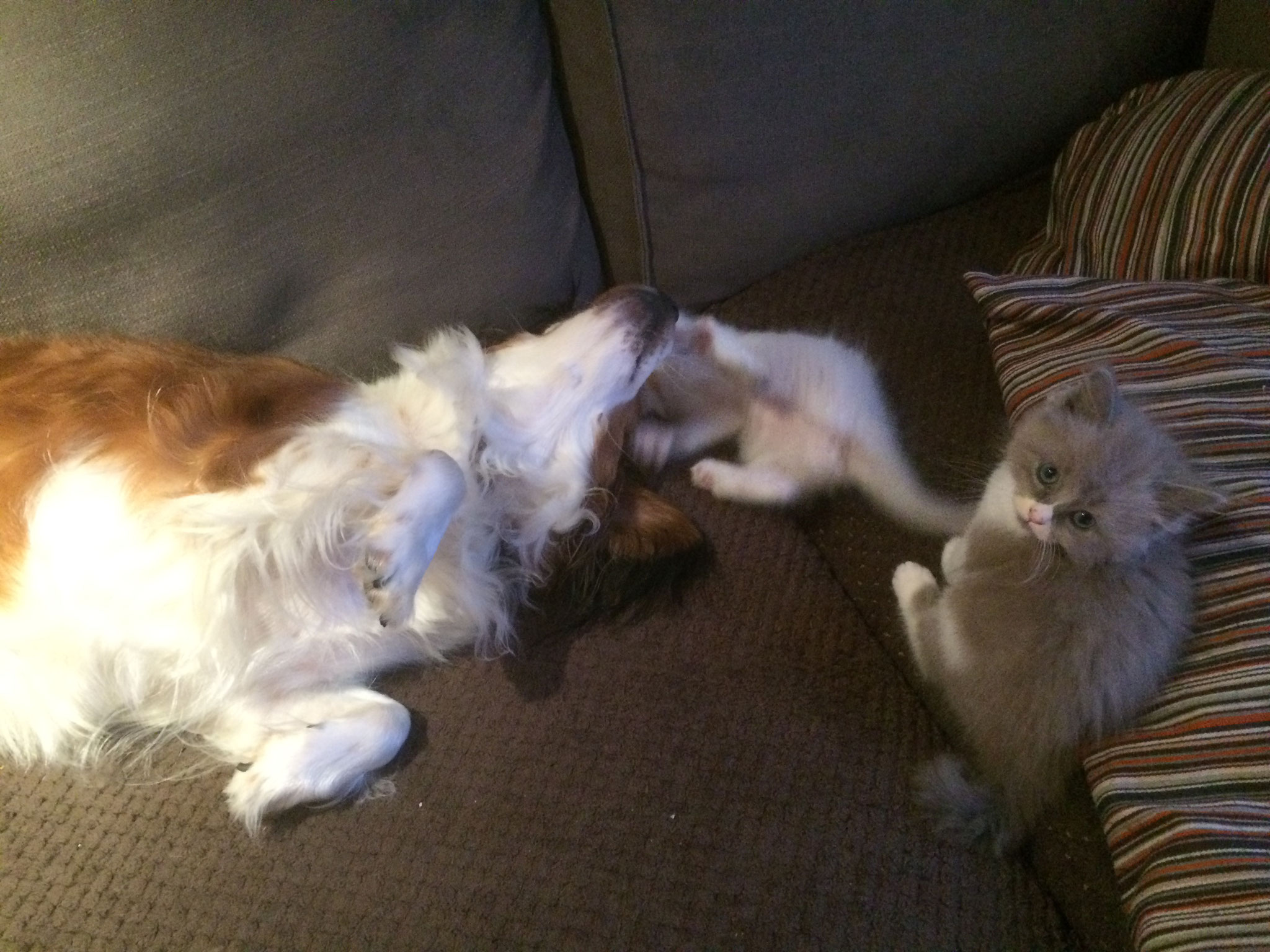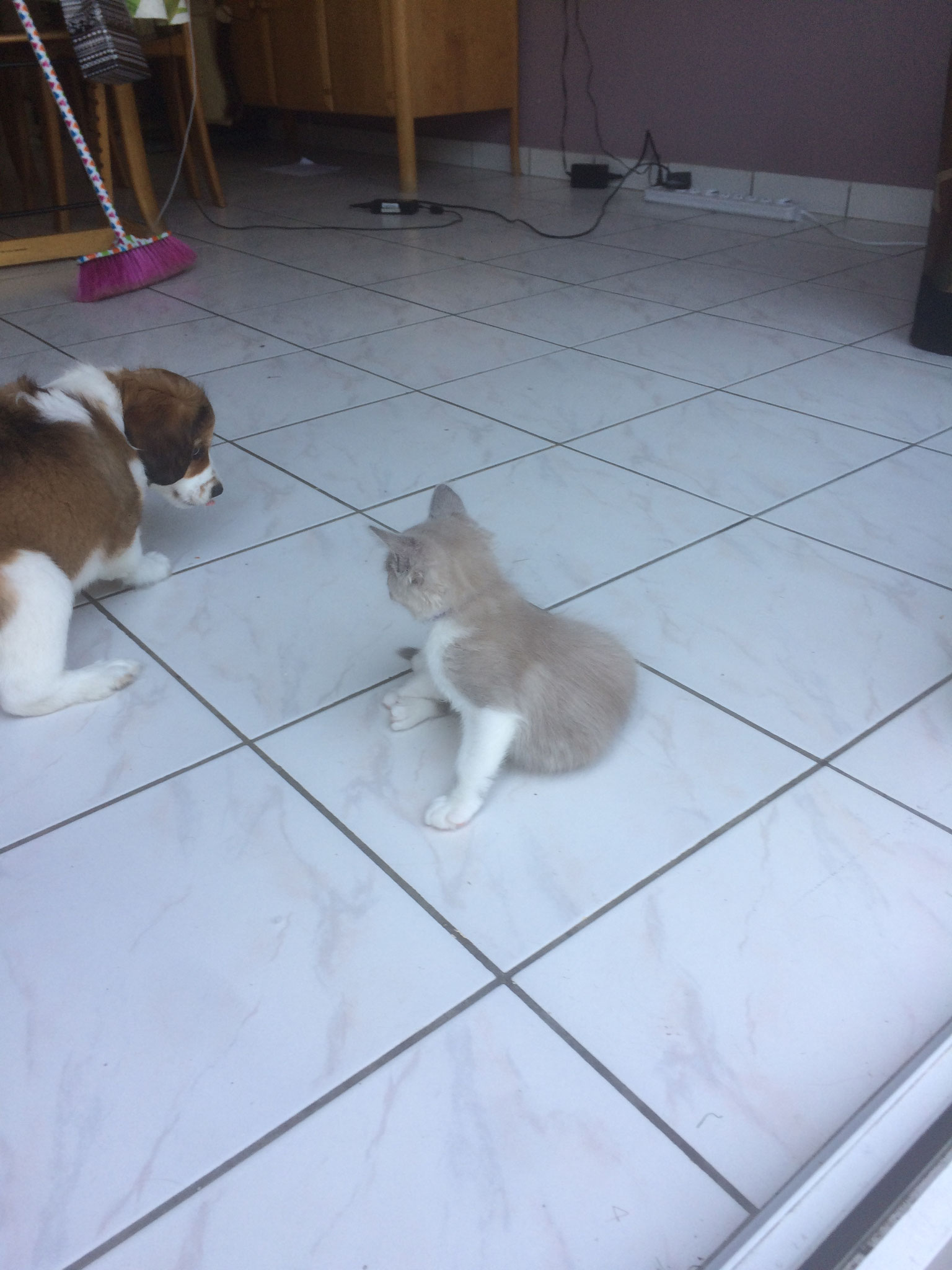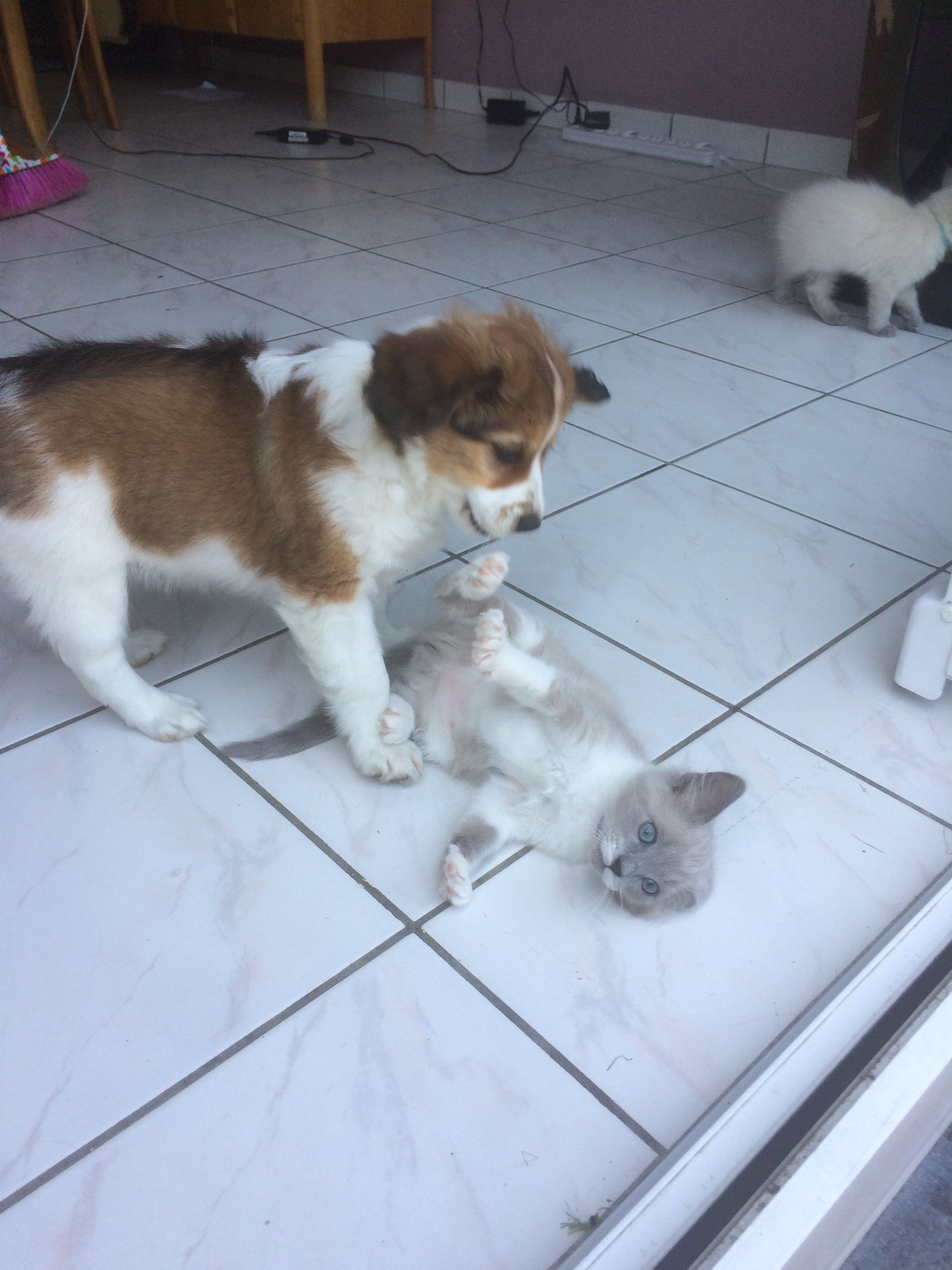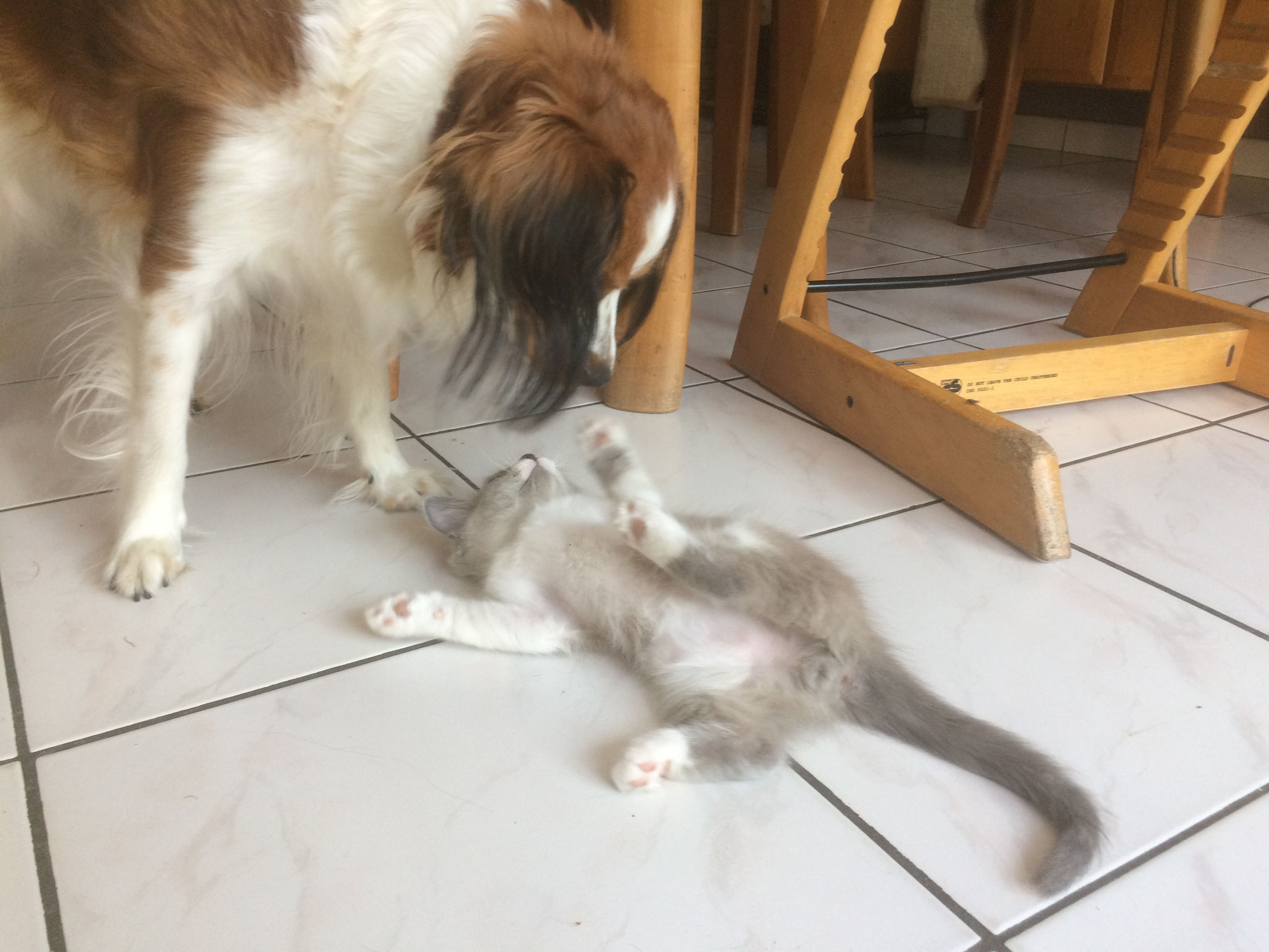 Milan, het kitten en Luiz de pup hebben een bijzondere vriendschap gesloten.